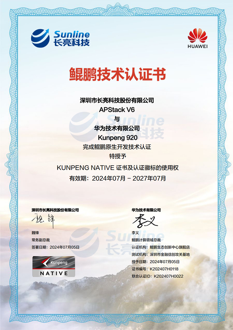 近日,長亮科技APStack技術平臺與華為Kunpeng920順利完成了鯤鵬原生開發技術認證,這一認證成果于7月12日舉行的“鯤鵬開發者創享日·廣東站”活動中正式揭曉,長亮科技獲得國內金融行業首張鯤鵬原生開發認證證書,在業內樹立了創新實踐的新標桿。