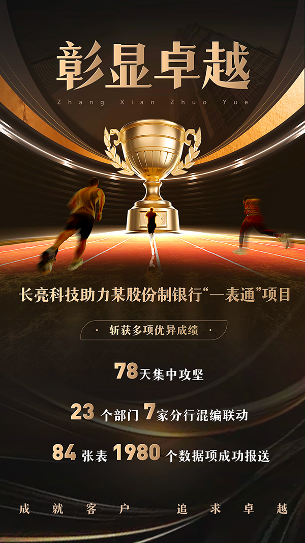 作為該項目的承建方,長亮科技團隊憑借在監管報送領域的專業能力和豐富經驗,完成了監管集市建設、一表通數據處理、一表通報送系統建設、一表通數據治理等一系列工作,為某股份制銀行“一表通”項目的順利落地提供了高質量的技術支持與實施服務。