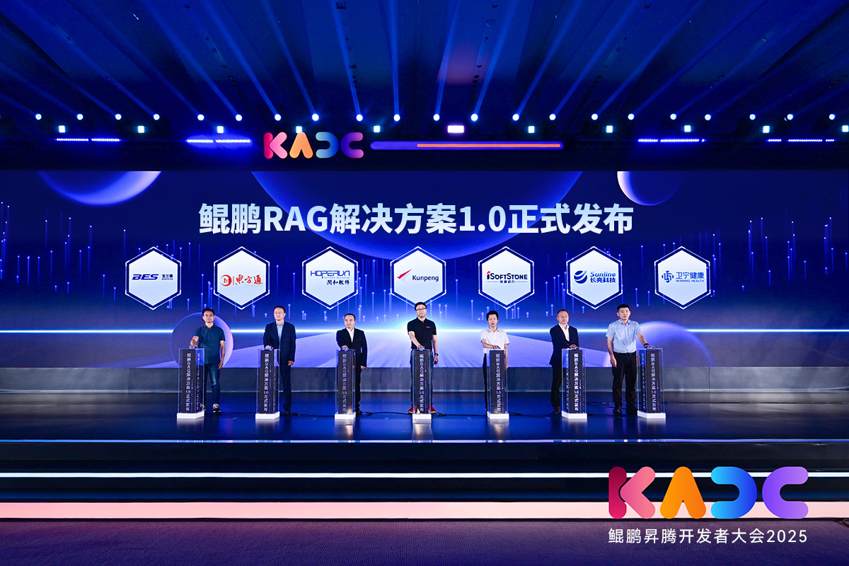 開(kāi)幕首日,華為鯤鵬攜手長(zhǎng)亮科技等6家企業(yè)聯(lián)合發(fā)布“鯤鵬RAG解決方案1.0”。長(zhǎng)亮科技總裁助理孫世勝出席聯(lián)合發(fā)布儀式。