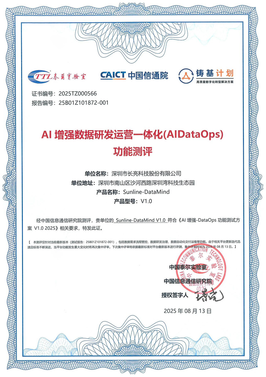 此次通過中國信通院權威測評,不僅標志著DataMind技術能力得到行業(yè)高度認可,更夯實了長亮科技在金融數據管理領域的領先地位。未來,長亮科技將以 AI 與 DataOps 技術為核心,持續(xù)推進DataMind智能化能力迭代升級,賦能更多金融機構釋放數據價值,助力其在激烈的市場競爭中搶占先機。