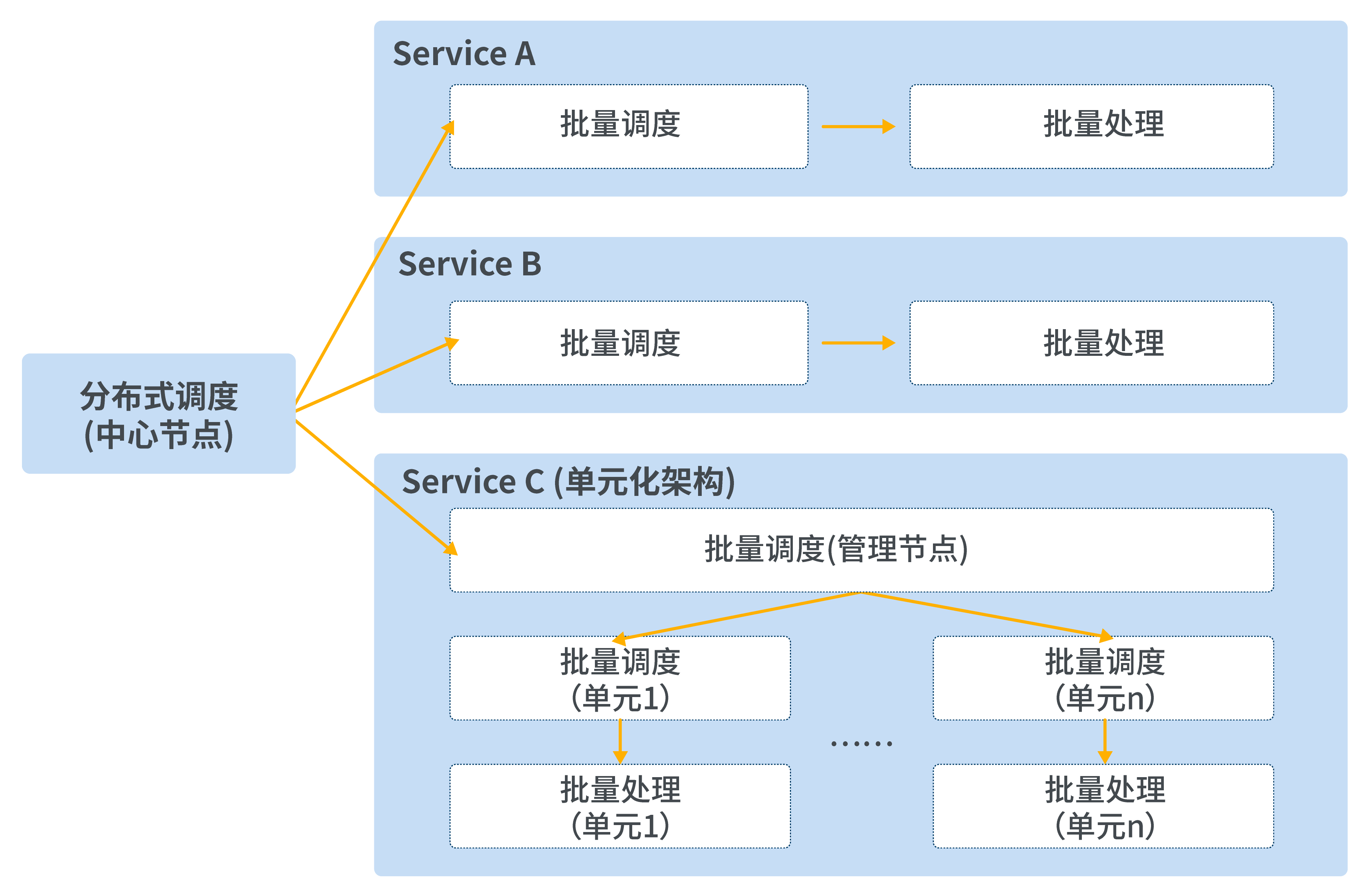 分布式調度,在設計上要充分考慮微服務架構和分布式架構(單元化分布式架構、數據庫中間件分布式架構)下的混合調度處理,同時需要關注框架的擴展性、去中心化調度能力、數據分區(qū)能力。