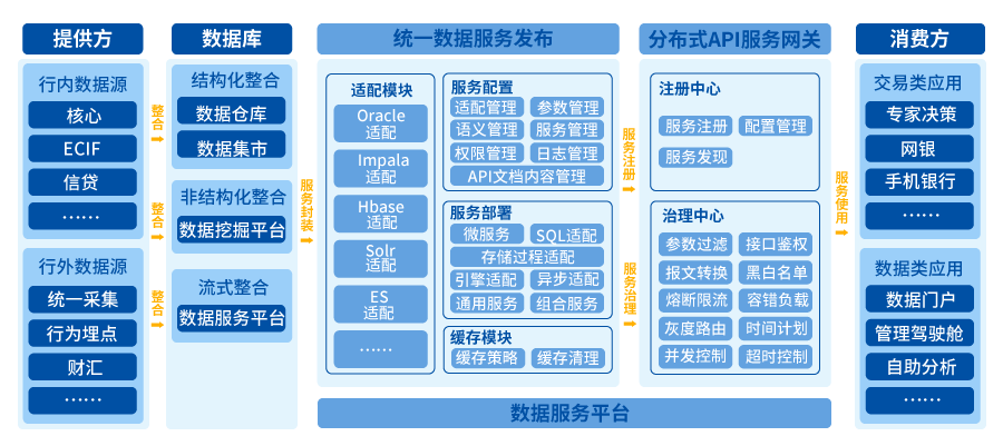 近年來,在互聯(lián)網(wǎng)巨頭們數(shù)據(jù)中臺化趨勢下,金融機構紛紛建設數(shù)據(jù)中臺體系以實現(xiàn)“數(shù)字化轉型”,數(shù)據(jù)中臺體系的一個重要價值體現(xiàn)就是“數(shù)據(jù)服務化”,激活數(shù)據(jù)價值,為商業(yè)決策所用。