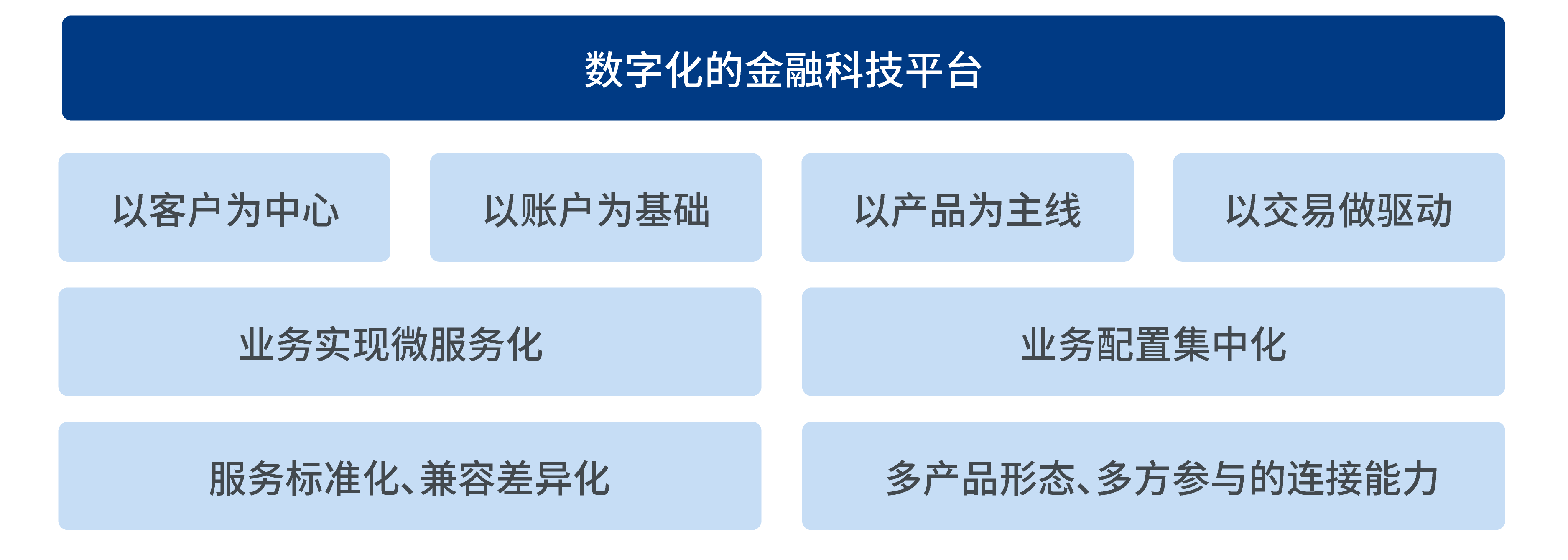 ■ 在業(yè)務(wù)應(yīng)用層面,以客戶為中心提供智能化服務(wù),以賬戶為基礎(chǔ)處理信用卡領(lǐng)域各型業(yè)態(tài),搭建基于數(shù)字化理念的信用卡金融科技平臺(tái)。