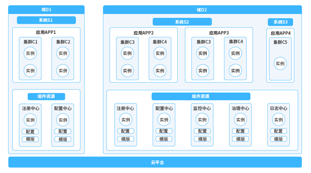提供一套圍繞業(yè)務(wù)應(yīng)用和基礎(chǔ)組件的管理體系。在業(yè)務(wù)應(yīng)用管理方面,提供從域、系統(tǒng)、分區(qū)、應(yīng)用和單元(集群)等多維度管理方案,進(jìn)而細(xì)粒度的控制業(yè)務(wù)應(yīng)用接入;在基礎(chǔ)組件管理方面,可以對組件資源進(jìn)行統(tǒng)一管理,做到應(yīng)用零配置化即可使用組件。
